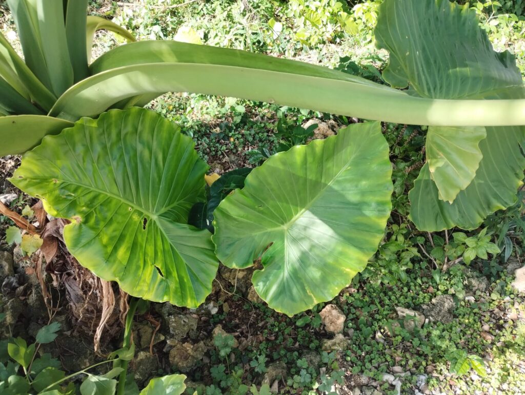 その理由が、こちら!わが家の周りに自生している「クワズイモ」です🌿