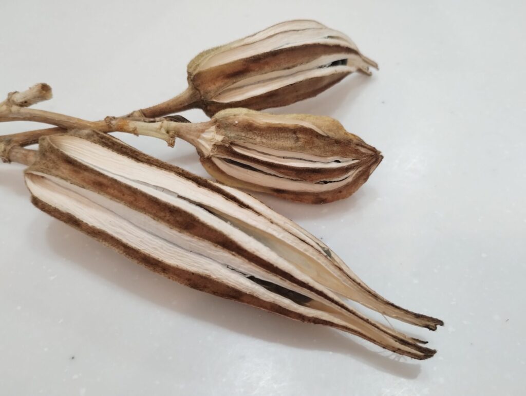 こちらは、大きなオクラ「ダビデの星」。種取り用に、実を乾燥させました。