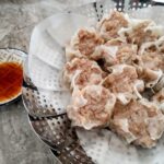 蒸し立て熱々のシュウマイに、酢醬油とからしをちょっと付けていただきました。