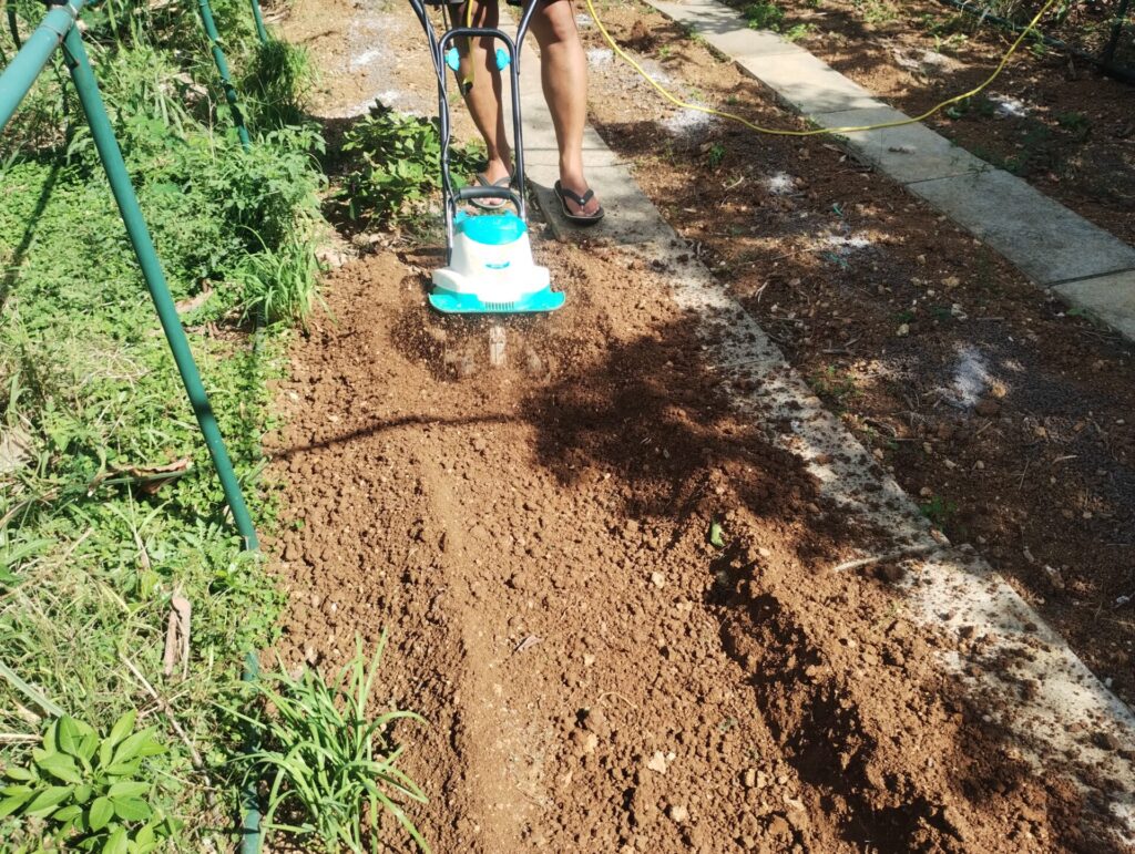 夫の相棒、家庭用耕運機「菜援(さいえん)君」は今回も大活躍。